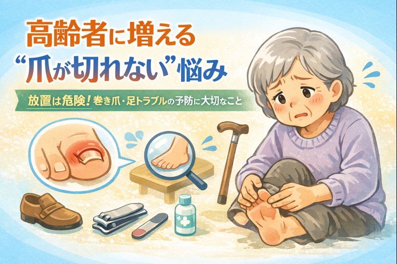 分厚く自分で切れない爪・驚く様な形に変形した爪・爪甲鉤彎症。