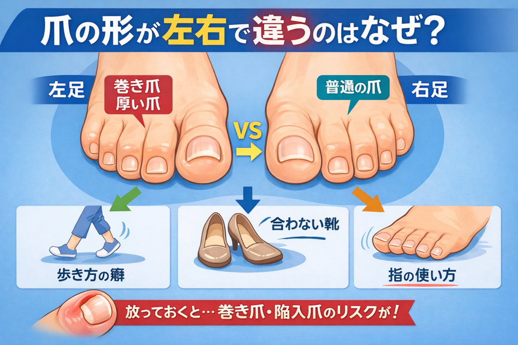 巻き爪には種類やパターンがいくつもあり、お客様により痛みやお悩みは様々です。