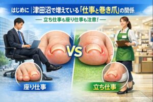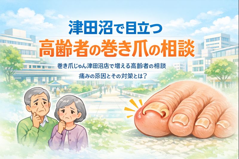 津田沼で増えている高齢者の巻き爪トラブルについて、巻き爪じゅん津田沼店が専門的に解説。なぜ年齢とともに巻き爪が悪化しやすくなるのか、歩行・爪の変化・痛みの関係から分かりやすく紹介します。